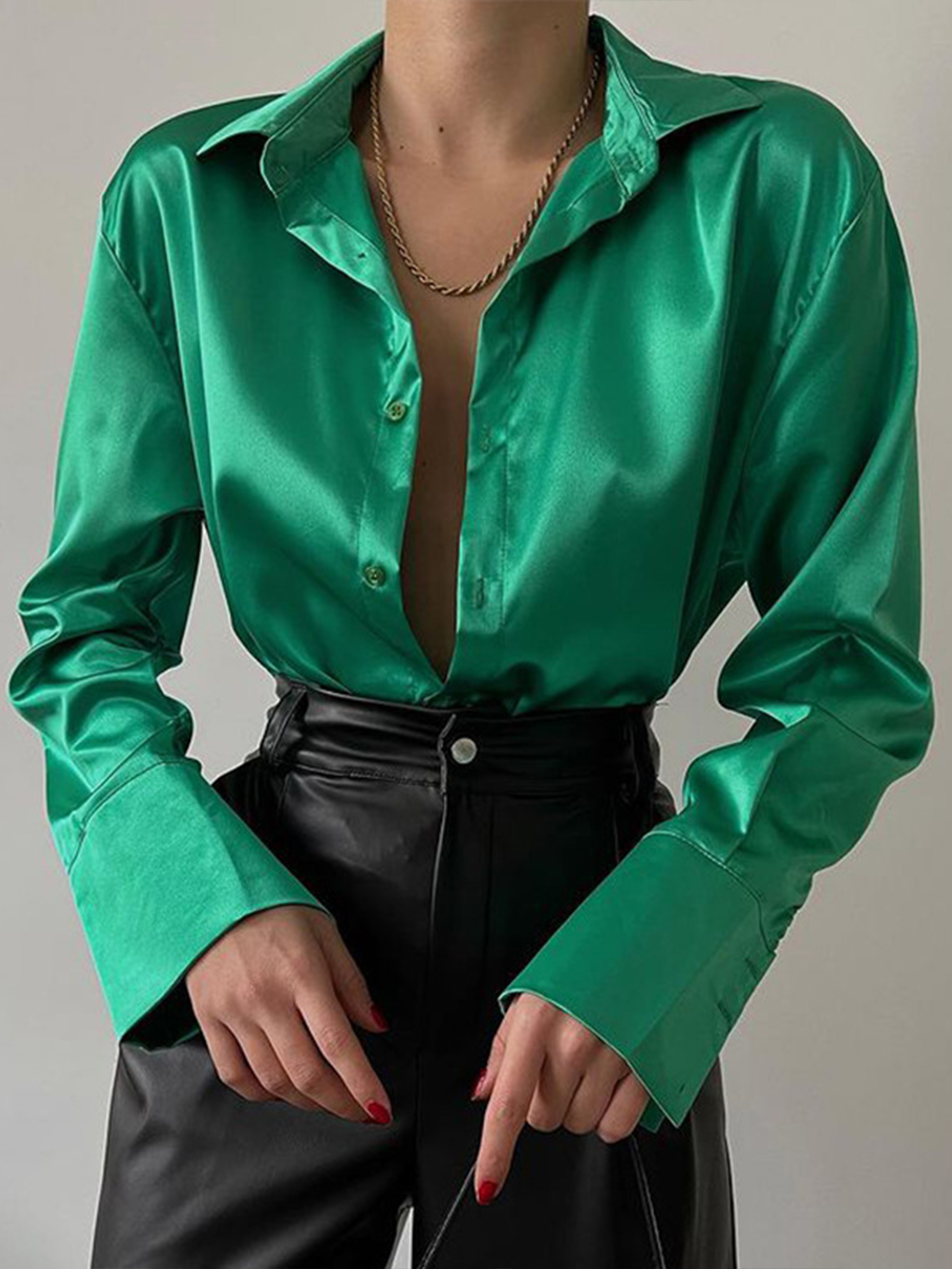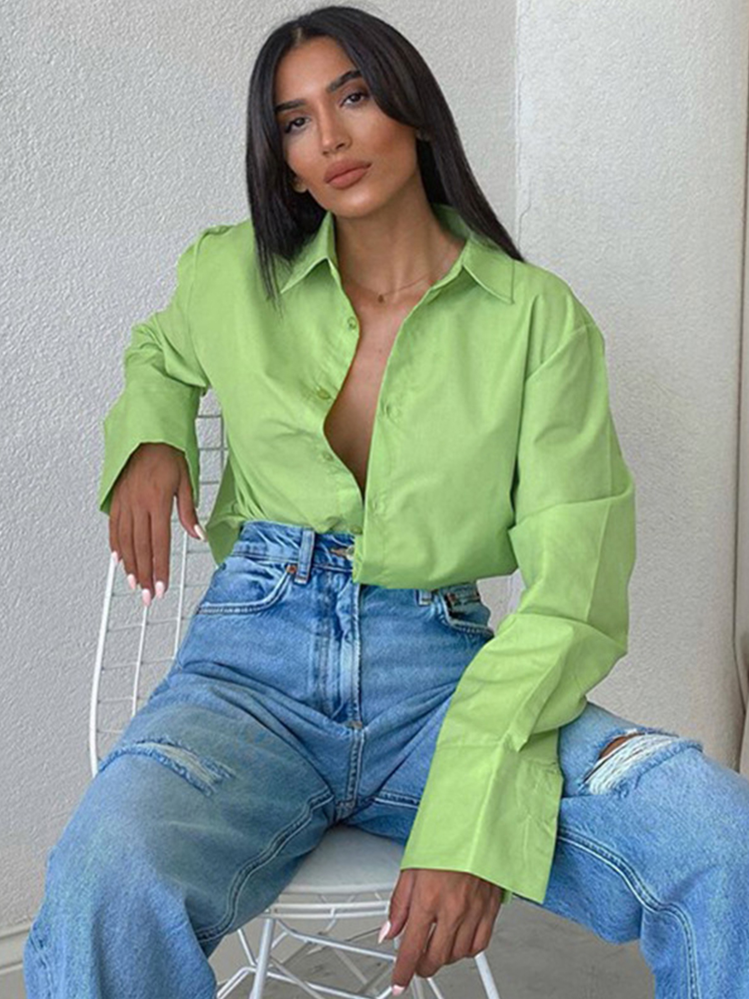 Solid color tie long sleeve loose shirt