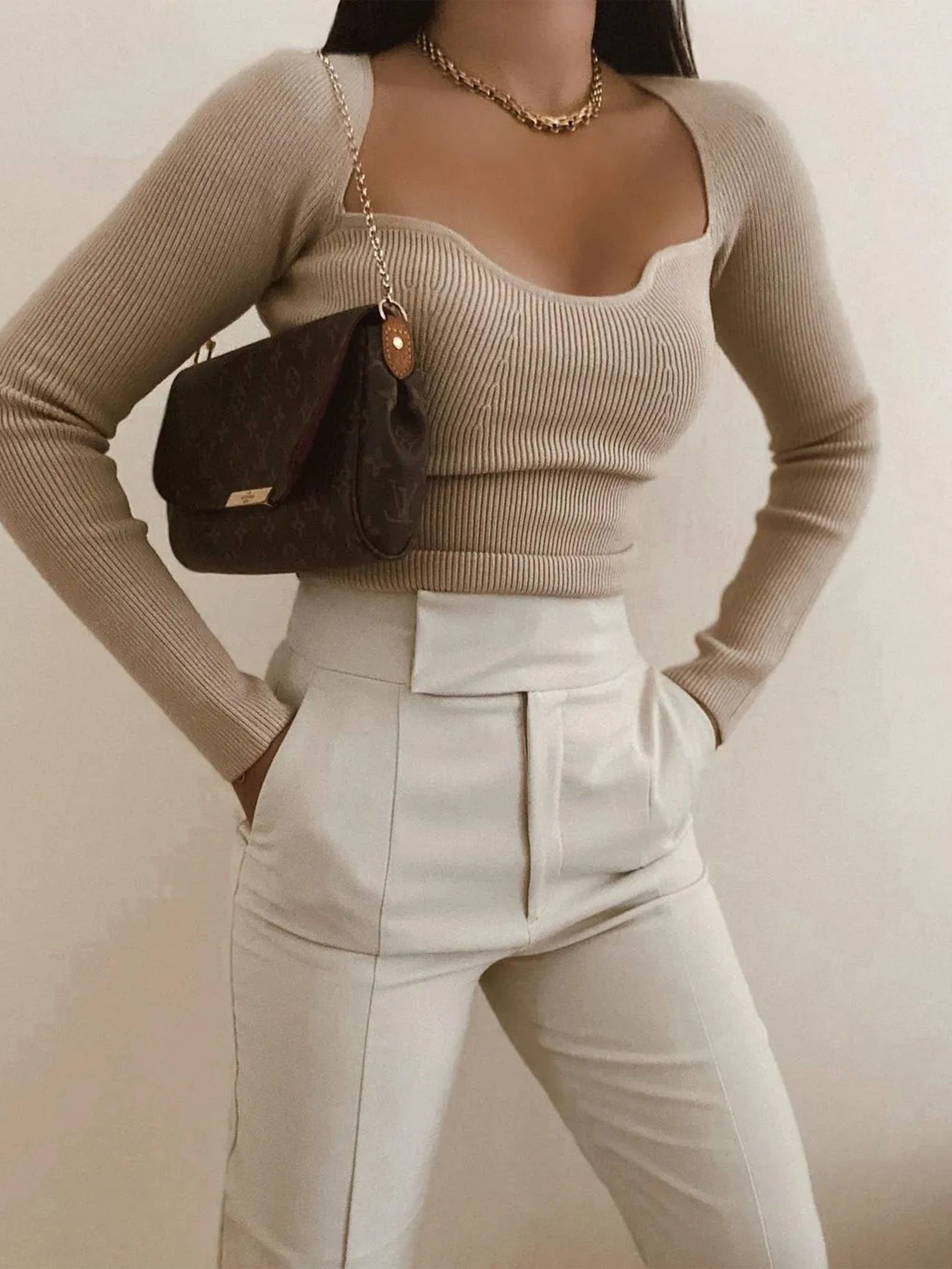 Retro peach heart collar long-sleeved tight-fitting short knit top