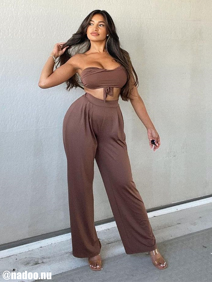 Fashion sexy solid color lace-up tube top and trousers two-piece suit